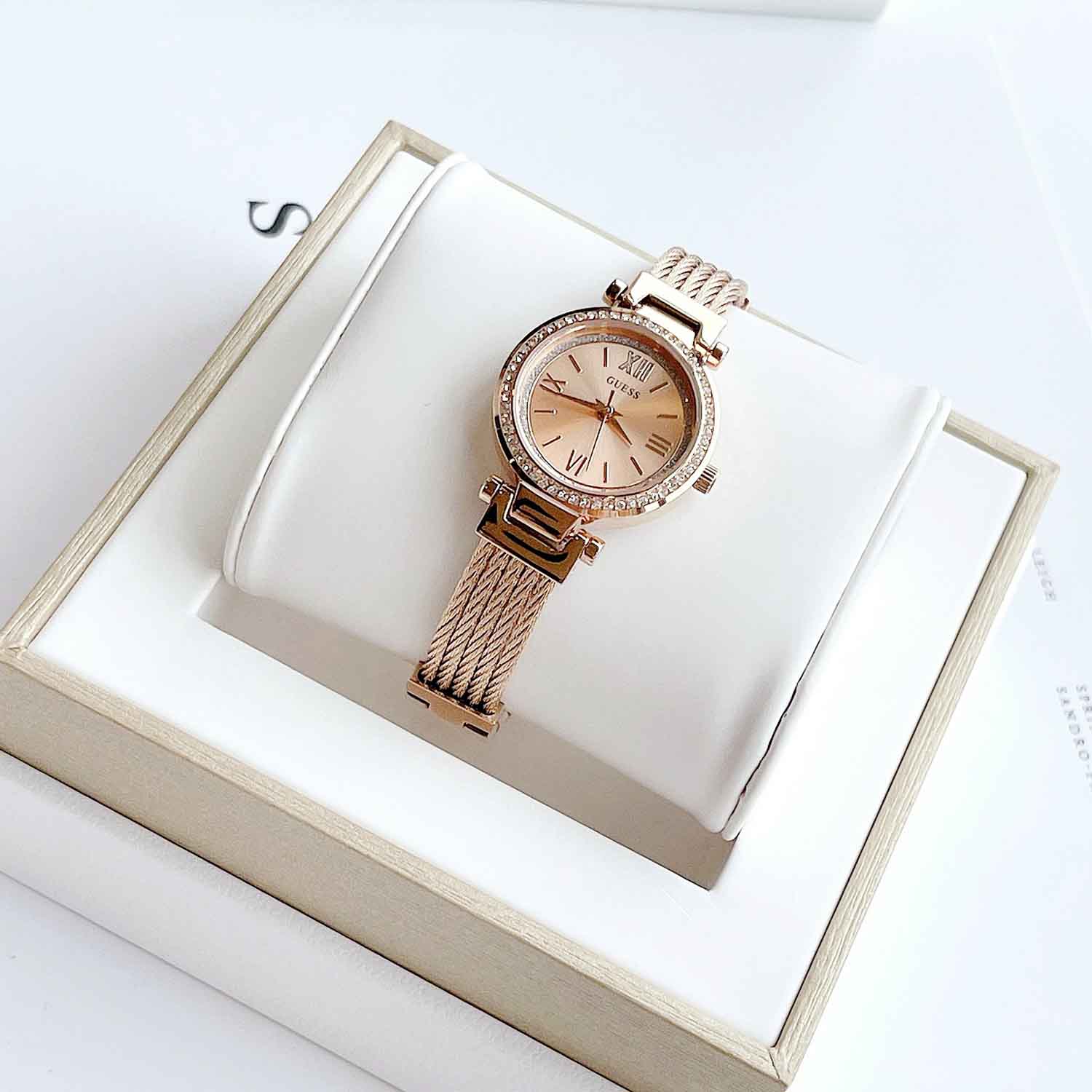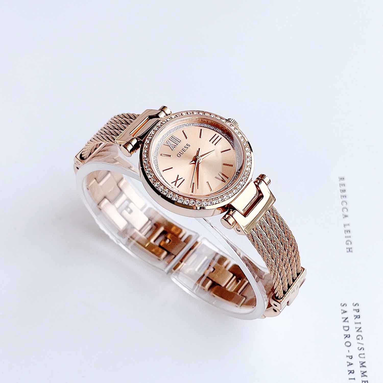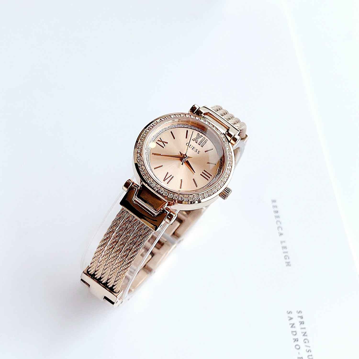 GUESS Quartz Crystal Rose Dial Petite Ladies Watch U1009L3