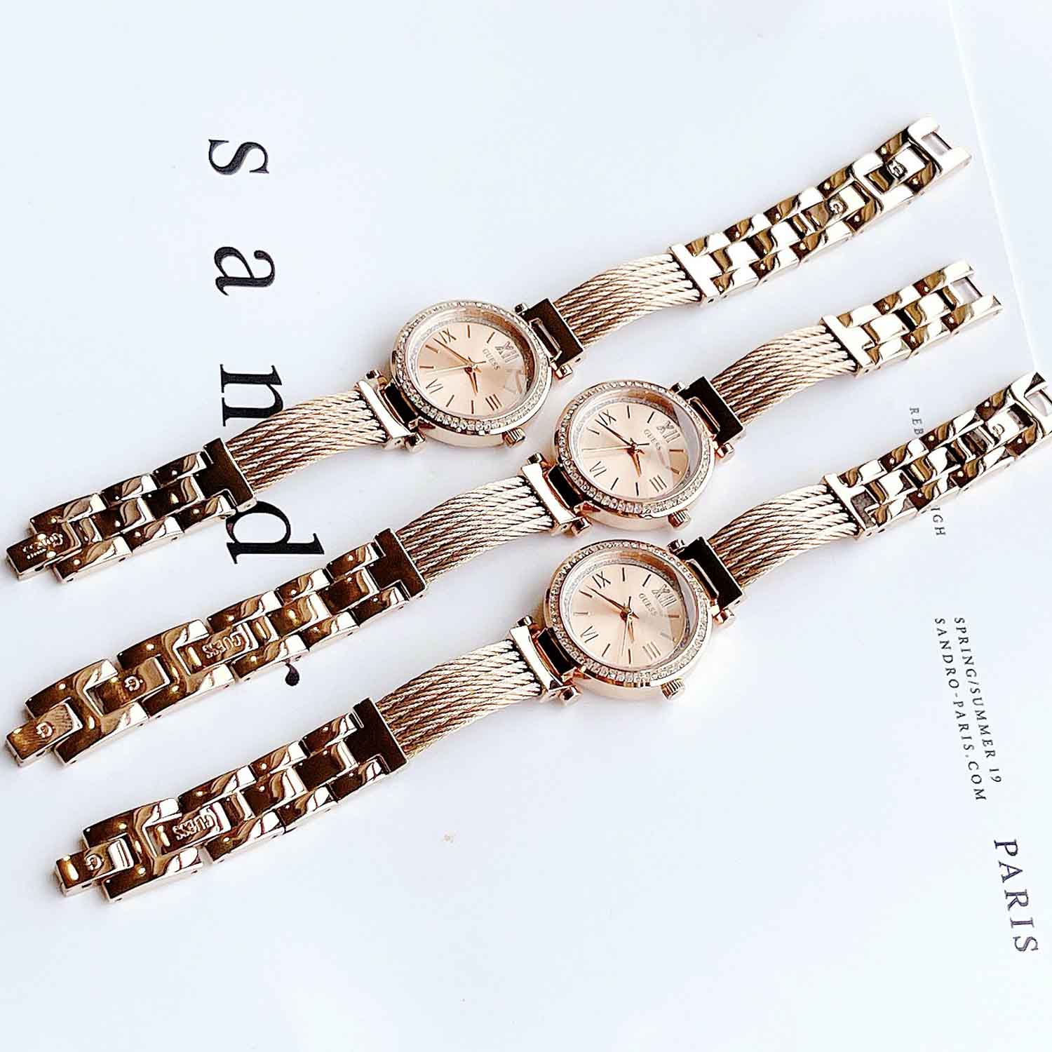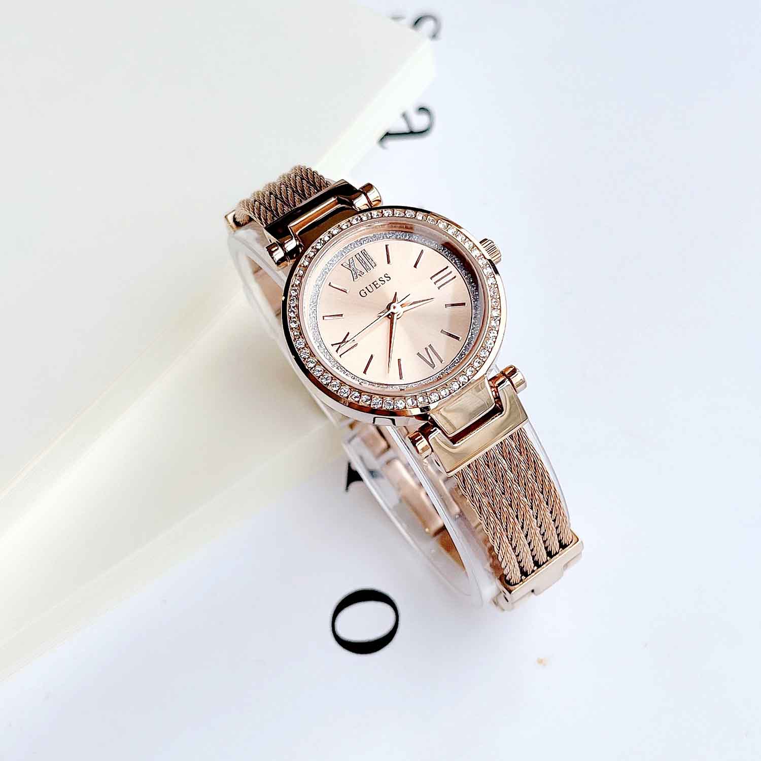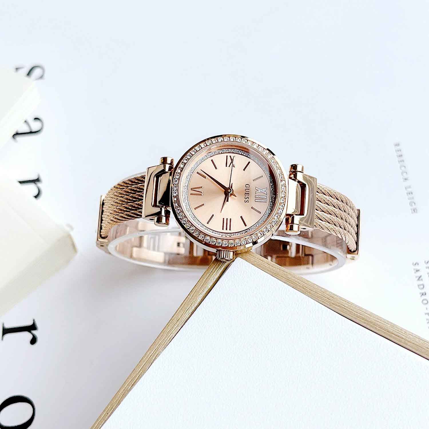 GUESS Quartz Crystal Rose Dial Petite Ladies Watch U1009L3