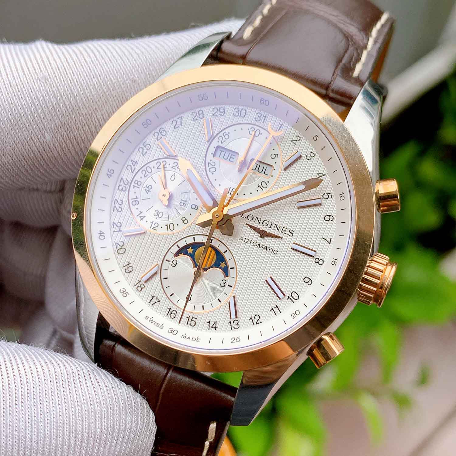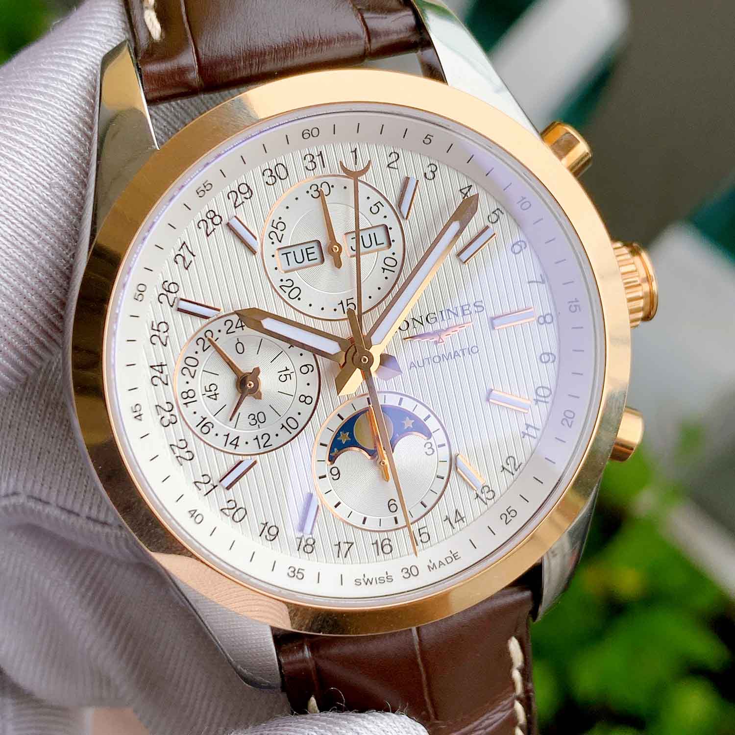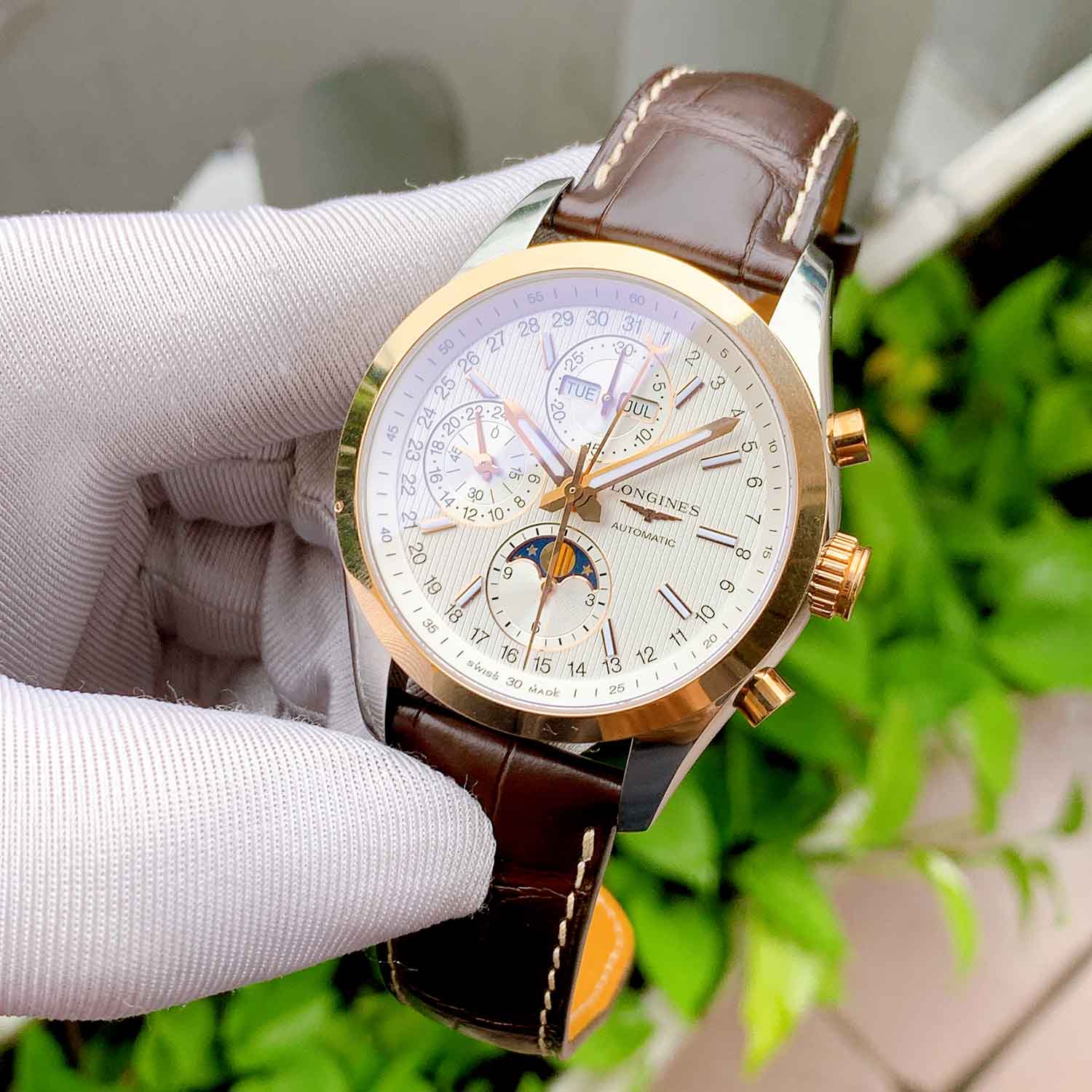 Longines Conquest Moonphase Chronograph Demi 18K L2.798.5.72.3 (L27985723 ) Like New